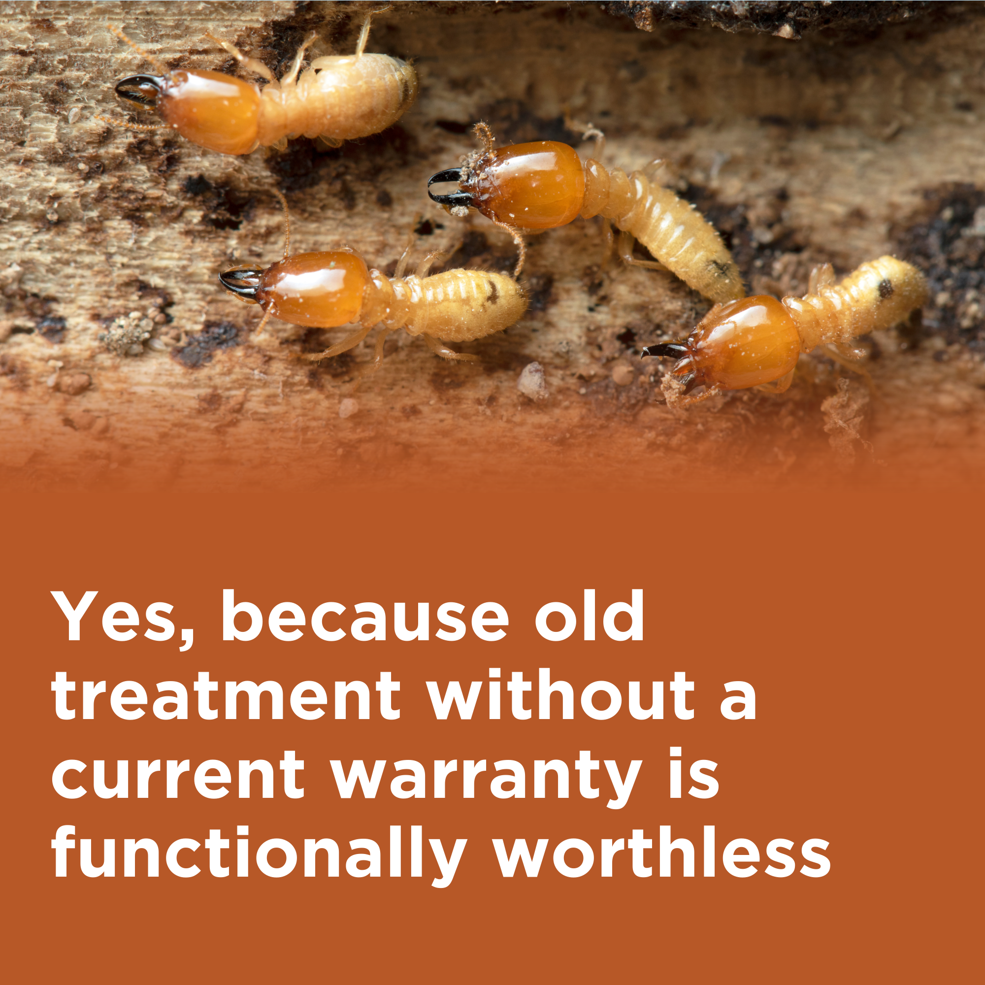 If a house has signs of previous termite treatment(drill holes, bait stations, etc.), but termite damage is found in the crawlspace, does it need to be retreated? Restart Form